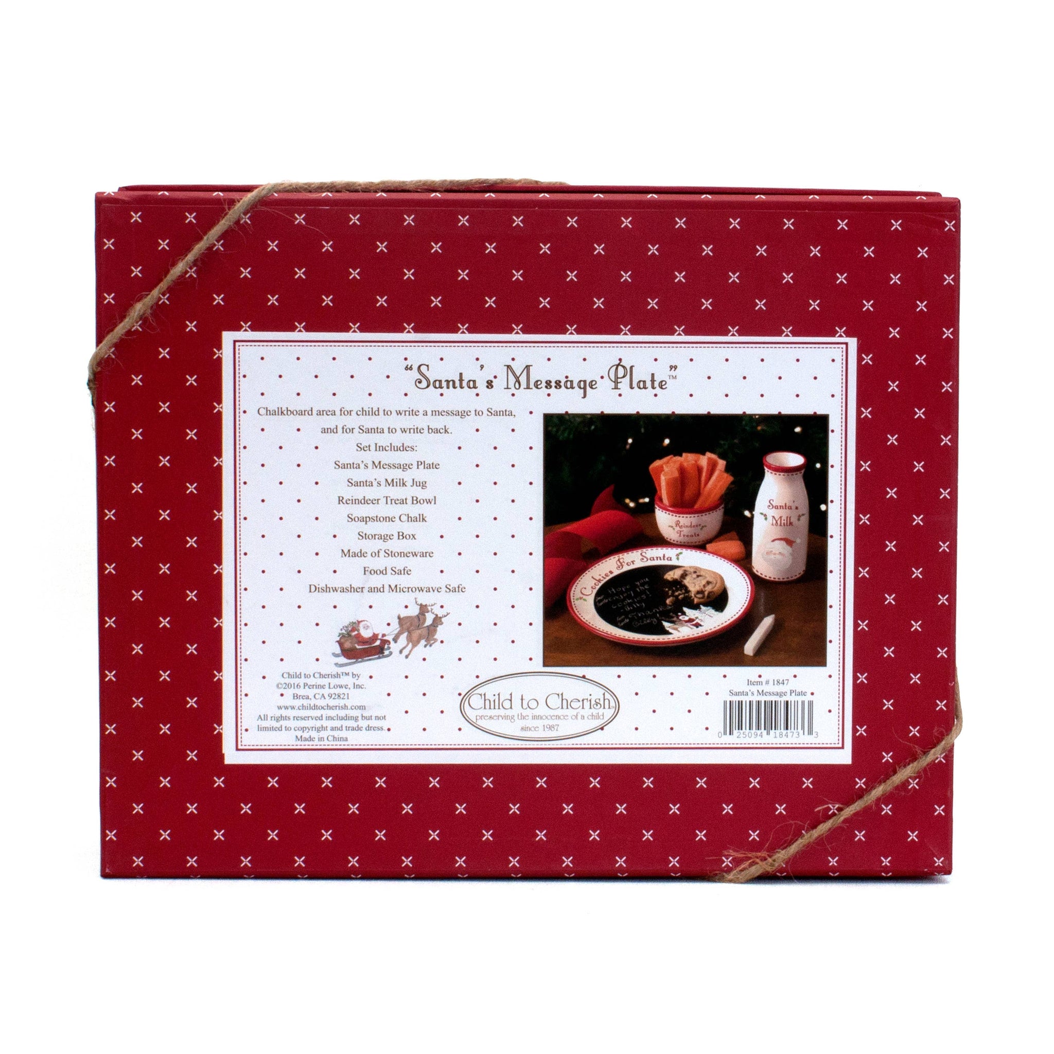 Along with cookies and a glass of refreshing milk, kids can add their own special message with the 8-inch chalkboard surface of the plate. Perfect size for kiddos learning their letters! Set comes with non-toxic soapstone chalk to make every message clear for Santa to read. Make sure to leave the chalk with it so he can reply back!