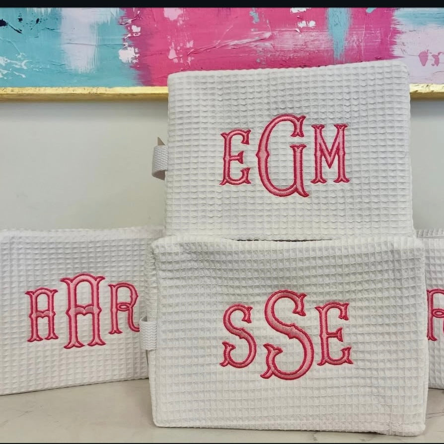 This will be her grab and go cosmetic bag. Cotton waffle bag with zipper makes the search easy. Vinyl lining and interior pocket add convenience for lots of items and makes the bag easy to wash. Perfect gift
