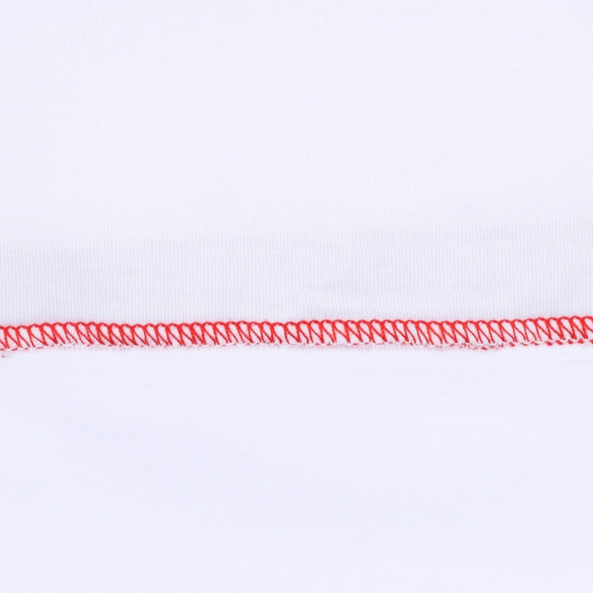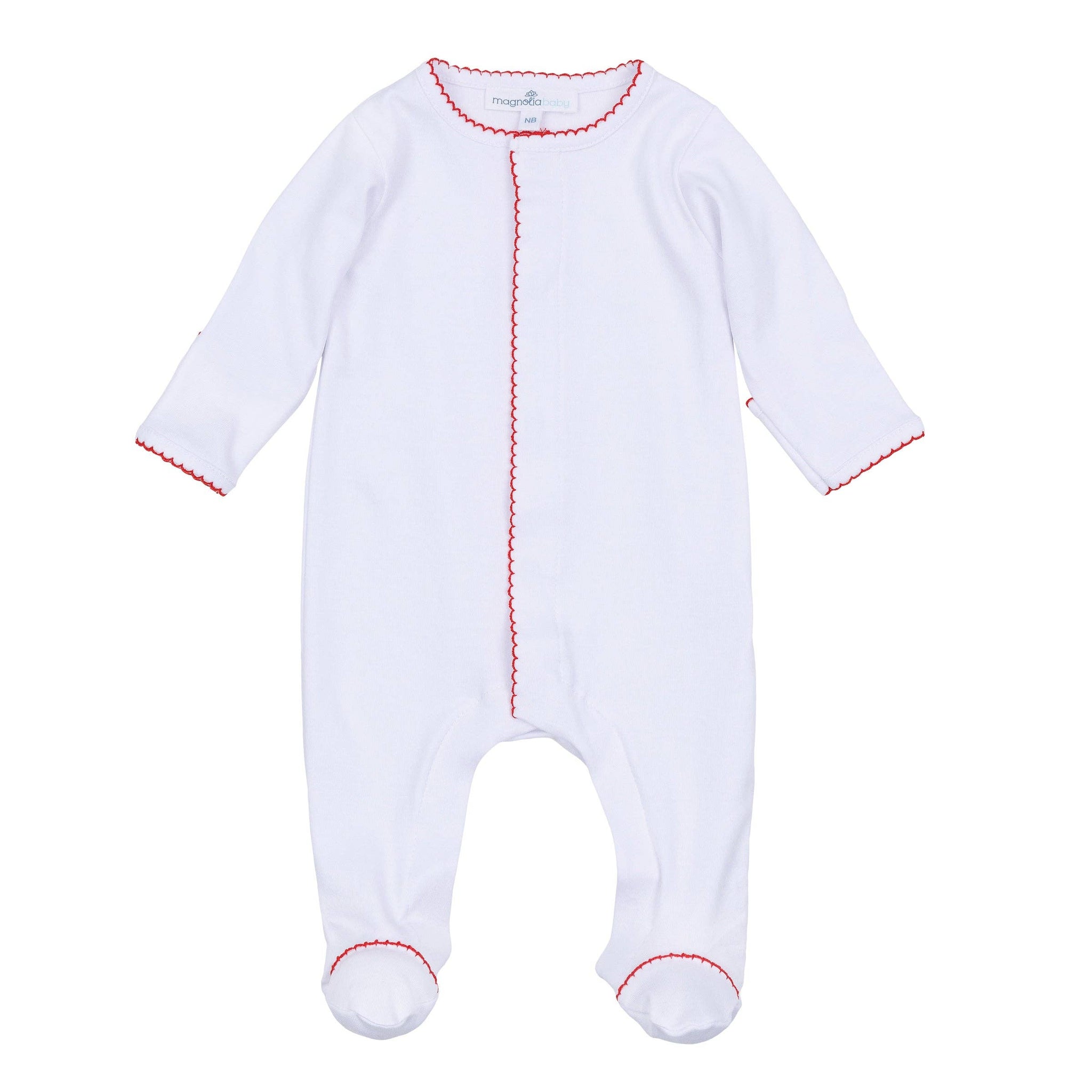 MONOGRAM LAYETTE FOOTIE RED PICOT TRIM
