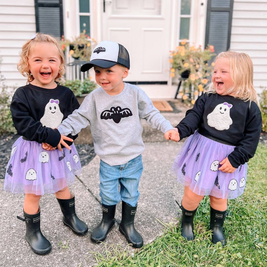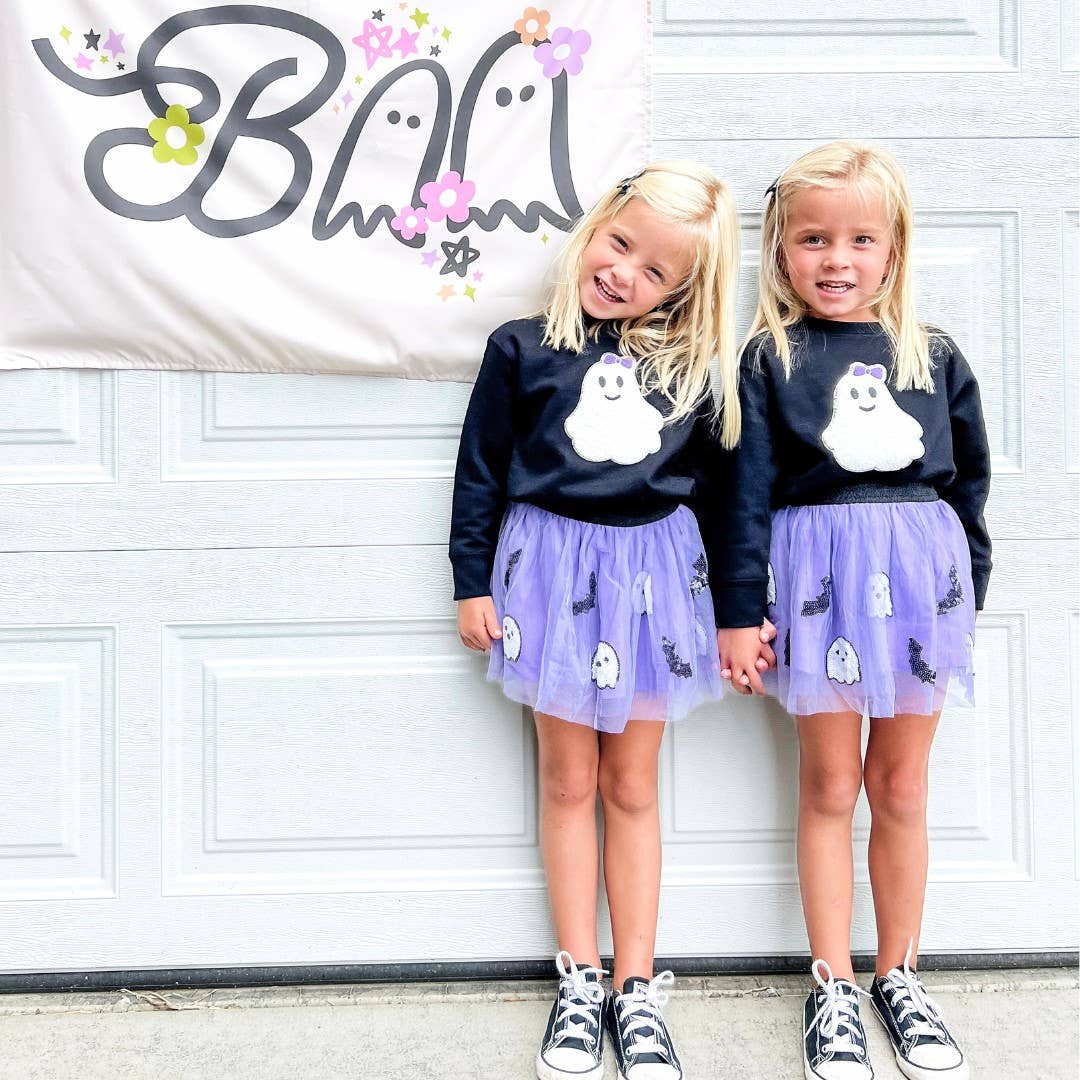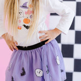 The Ghost and Bat Sequin Halloween Tutu is a fun skirt and dress up tutu for celebrating Halloween!